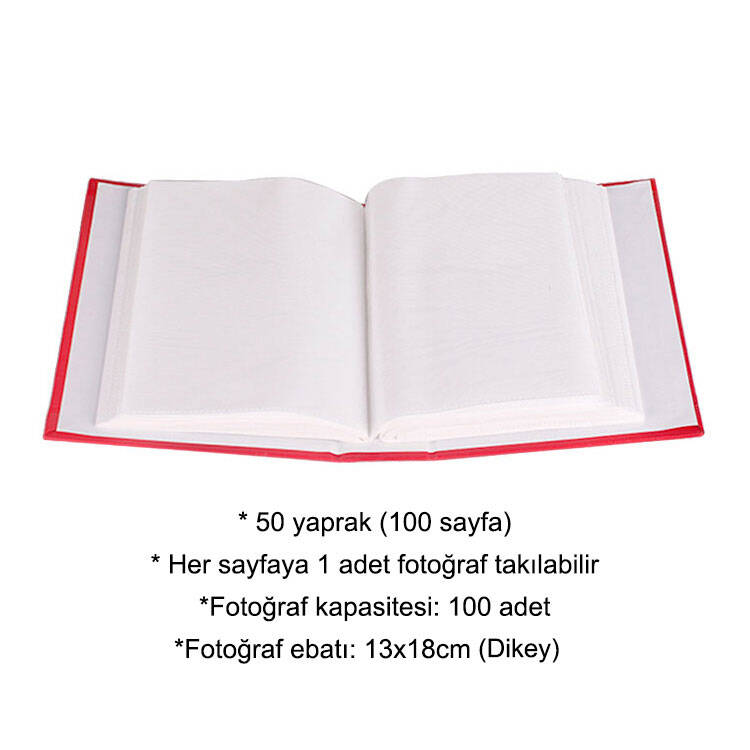 Deri malzemeden üretilmiş, içerisine 13x18cm ebatlarında 100 adet fotoğraf alabilen, 3 farklı renk çeşidine sahip, hediyelik fotoğraf albümü stoklarda.