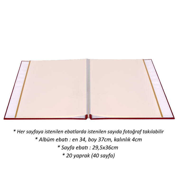 • Albüm dış ebatı: en 34cm, boy 37cm, kalınlık 4cm'dir.
