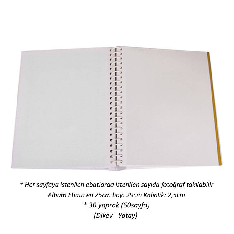 Albüm dış ebatı: en: 25cm boy: 29cm kalınlık: 2,5cm