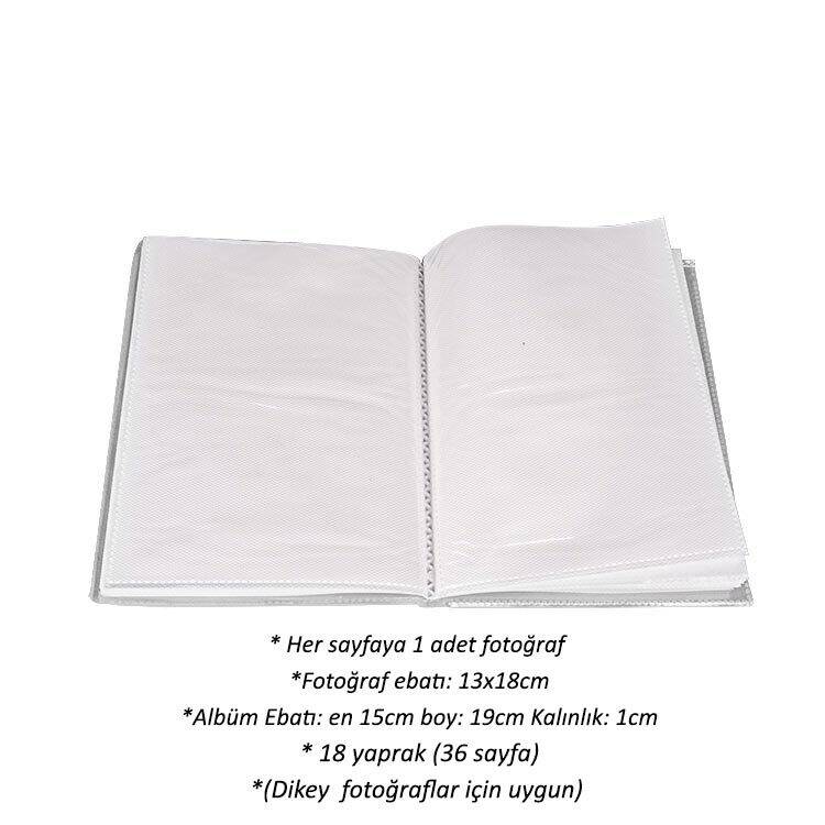 6'lı paket olarak satılan,13x18 cm boyutundaki dikey fotoğraflar için uygun, 36 fotoğraf kapasitesine sahip toptan promosyon fotoğraf albümü.
