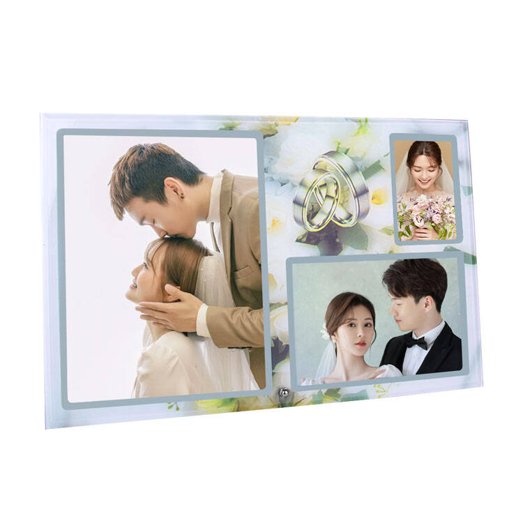 İçerisine 3 adet farklı ebatlarda düğün fotoğraflarınızı sergileyebileceğiniz cam fotoğraf çerçevesi.