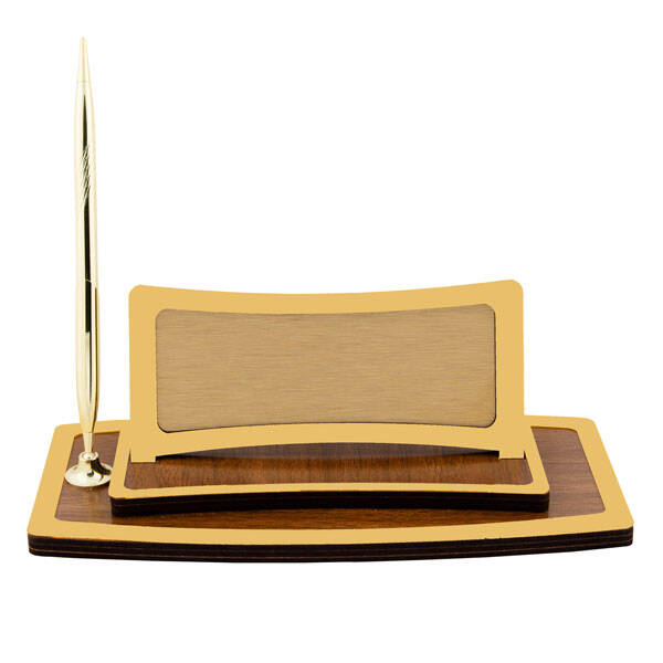 Ürün içeriği: 1 adet ahşap isimlik + 1 adet altın renkli metal kalem+ 1 adet fırçalı altın sublimasyon baskı metali