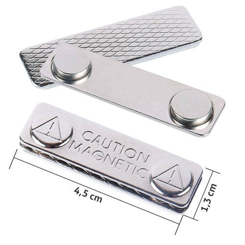 Yaka isimliklerinde kullanılabilir, arkası yapışkanlı metal mıknatıs.