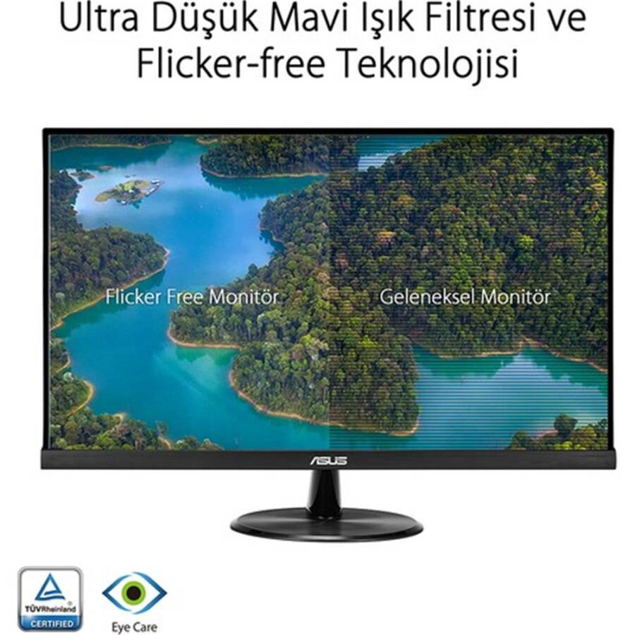 Asus VP279HE, geniş ekranı ve göz dostu teknolojileriyle konforlu bir görüntüleme deneyimi sunar. Hem profesyonel hem günlük kullanım için dengeli ve şık bir monitör seçeneğidir.