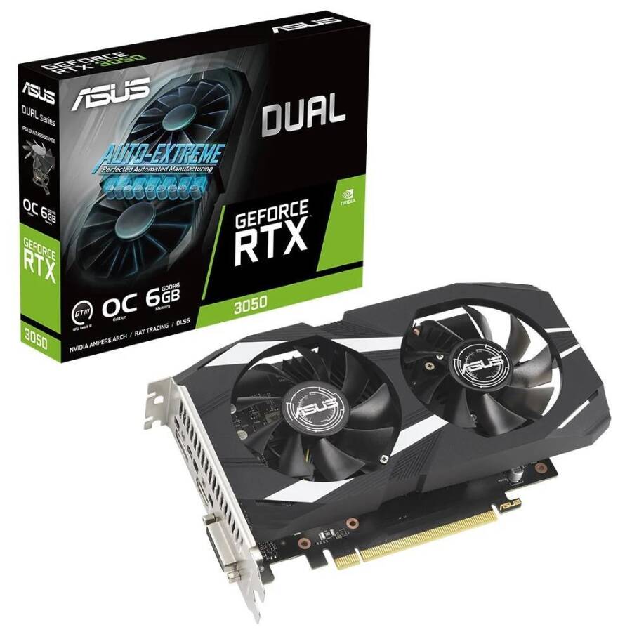 Asus Dual GeForce RTX 3050 OC DUAL-RTX3050-O6G NVIDIA 6GB GDDR6 96Bit DX12 Gaming Ekran Kartı