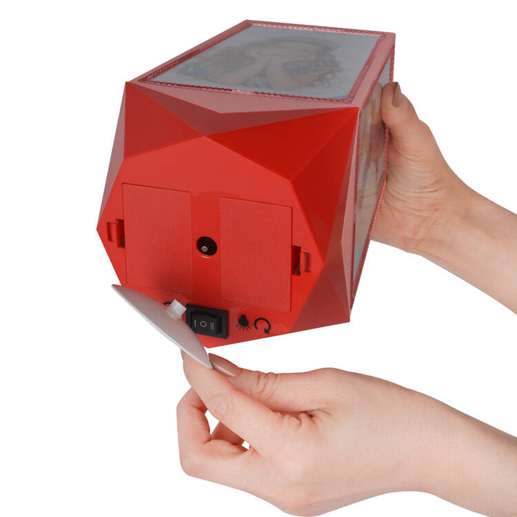 4 adet fotoğraf yerleştirilebilen, renkli, üzerinde ay ve yıldız şekilleri bulunan, kendi ekseninde 360 derece dönebilen, farklı renkleri bulunan, kaliteli, led ışıklı dönen küp çerçeve.