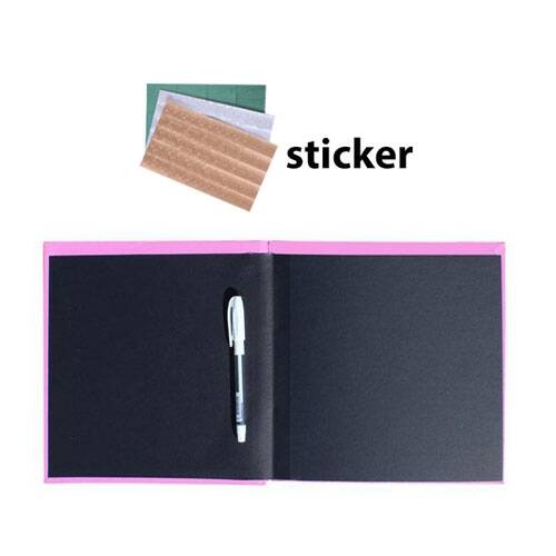 Ürün İçeriği:  1 adet 20 yapraklı ( 40 sayfa ) siyah anı defteri + 1   adet beyaz jel kalem +  75 adet 2.5x3.5 cm sticker