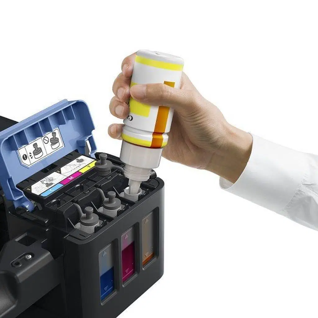 ⦾ Yüksek verimliliğe sahip mürekkep şişeli, basit USB bağlantısı ve yüksek sayfa hacimleri için kompakt, yeniden doldurulabilir bu yazıcıyı kullanarak sayfa başına düşük maliyetle metinleri net olan, yüksek kaliteli belgeler ve A4 boyutuna varan çerçevesiz canlı fotoğraflar basın..