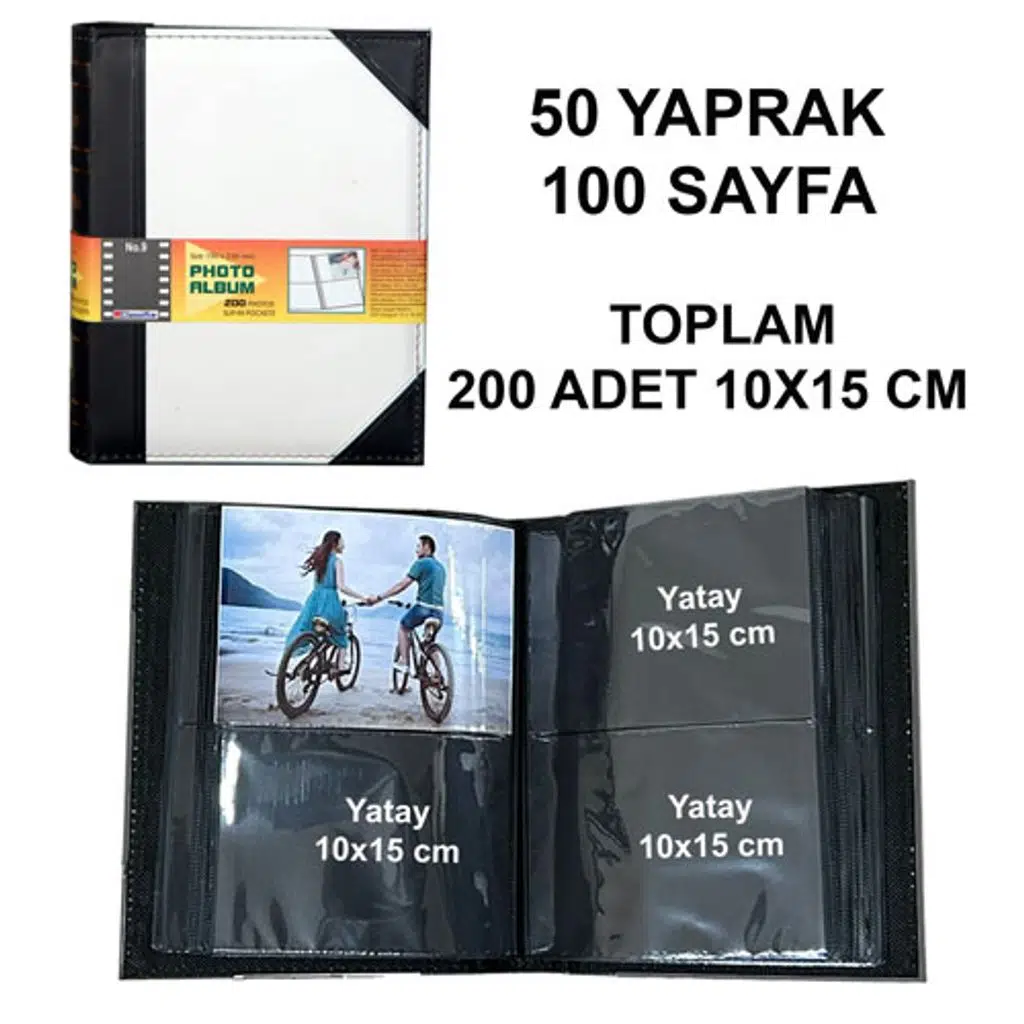 200'lük 10x15 cm Beyaz Siyah Deri Fotoğraf Albümü