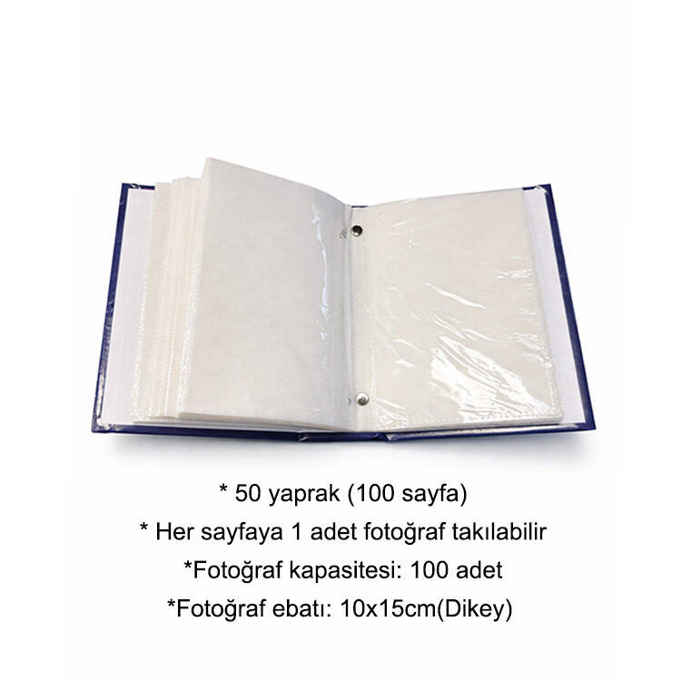 48 yaprak toplamda 96 sayfası bulunan 10x15cm ebatlarında fotoğraf takılabilen deri görünümlü fotoğraf albümü.