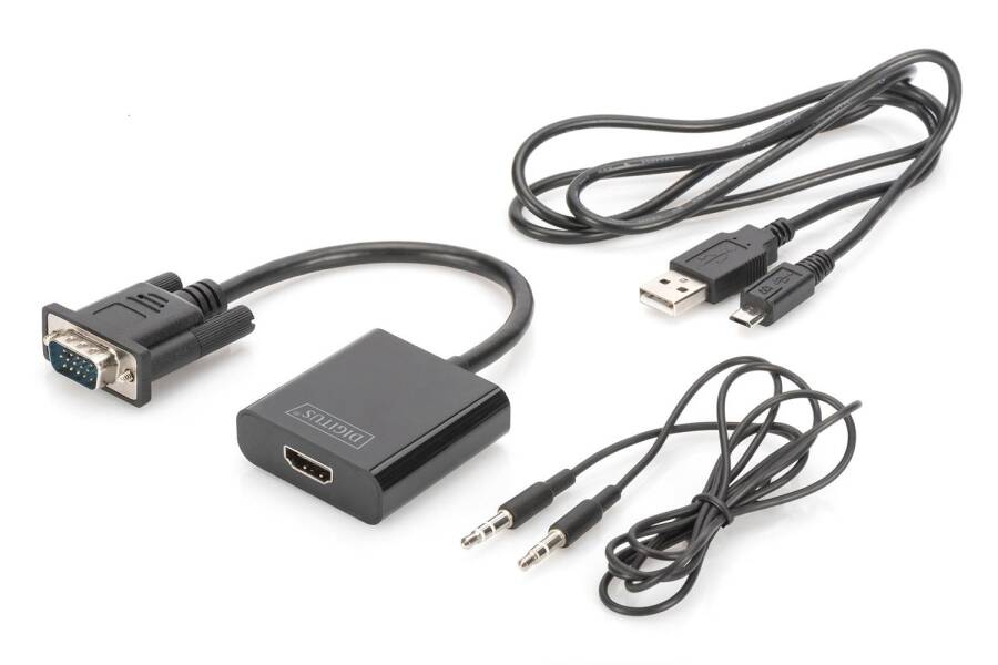 Digitus DA-70473 VGA - HDMI Çevirici + Ses (3.5mm), Full HD (1080p), Kablolu, 15 cm, Siyah Renk