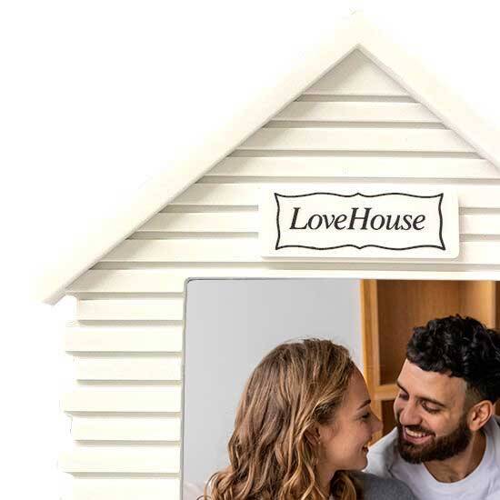 Kaliteli kalın mika malzemesinden üretilmiş, ''LOVE HOUSE'' ( Aşk Evi ) yazılı beyaz fotoğraf çerçevesi.