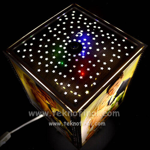 • Işığı açıldığında tavana ay yıldız şekillerini yansıtır. Altına ise beyaz ışık verir. Kendi ekseni etrafında 360 derece dönebilmektedir.
