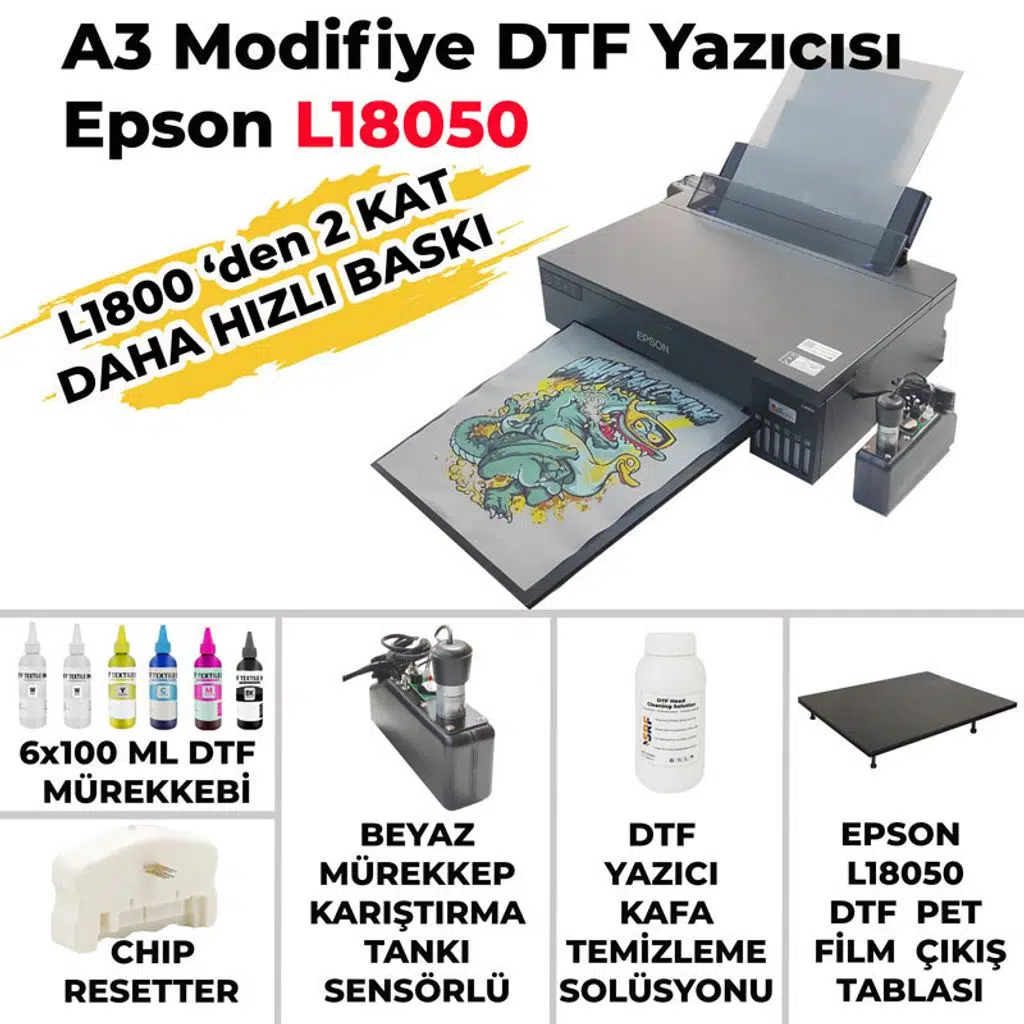 Not: Yazıcı modifiye edildiği ve orjinal epson mürekkepler kullanılmadığı için Epson firması tarafından garanti dışı bırakılmıştır. Yazıcıda oluşabilecek arızalarda firmamızın teknik servisi tarafından her türlü destek verilmektedir. Fakat, bu destek yazıcının garantili olduğu anlamına gelmemektedir.Bu nedenle müşterinin talebi ile modifiye edilen ve satın alınan DTF yazıcılarının iadesi mümkün değildir.