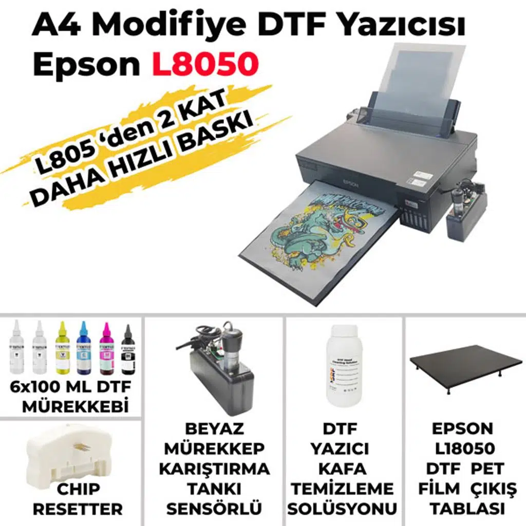 Not: Yazıcı modifiye edildiği ve orjinal epson mürekkepler kullanılmadığı için Epson firması tarafından garanti dışı bırakılmıştır. Yazıcıda oluşabilecek arızalarda firmamızın teknik servisi tarafından her türlü destek verilmektedir. Fakat, bu destek yazıcının garantili olduğu anlamına gelmemektedir.Bu nedenle müşterinin talebi ile modifiye edilen ve satın alınan DTF yazıcılarının iadesi mümkün değildir.