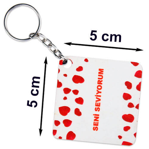 Sublimasyon baskıya uygun beyaz renk MDF den üretilmiş her iki yüzüne baskı yapılabilen kare bir anahtarlıktır.