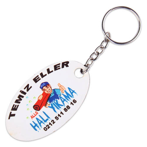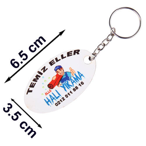 Sublimasyon baskıya uygun beyaz renk MDF den üretilmiş her iki yüzüne baskı yapılabilen oval şeklinde anahtarlık.