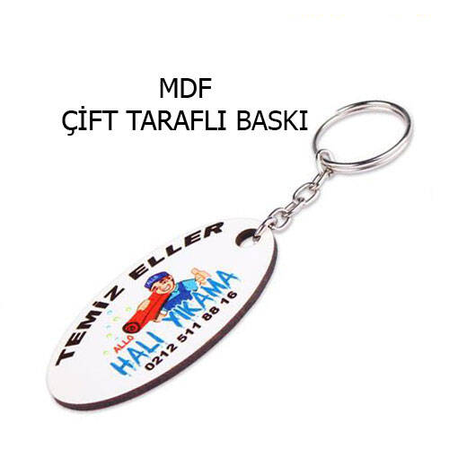 Sublimasyon baskıya uygun beyaz renk MDF den üretilmiş her iki yüzüne baskı yapılabilen oval şeklinde anahtarlık.