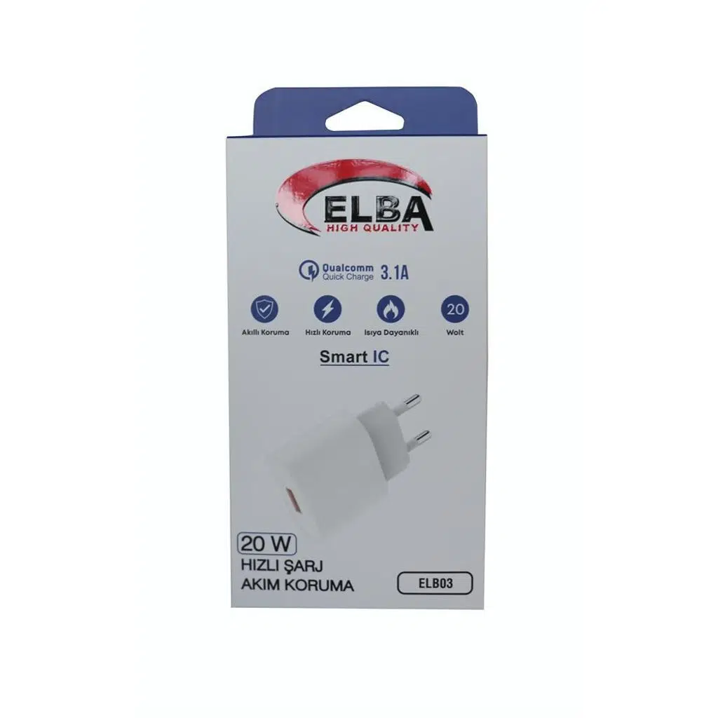 Elba ELB03-20USB, USB-A çıkışlı cihazlar için güçlü ve güvenli bir şarj çözümüdür. QC 4.0 desteğiyle hızlı şarj imkanı sunar, akıllı koruma devresiyle cihazınızı güvenle besler.