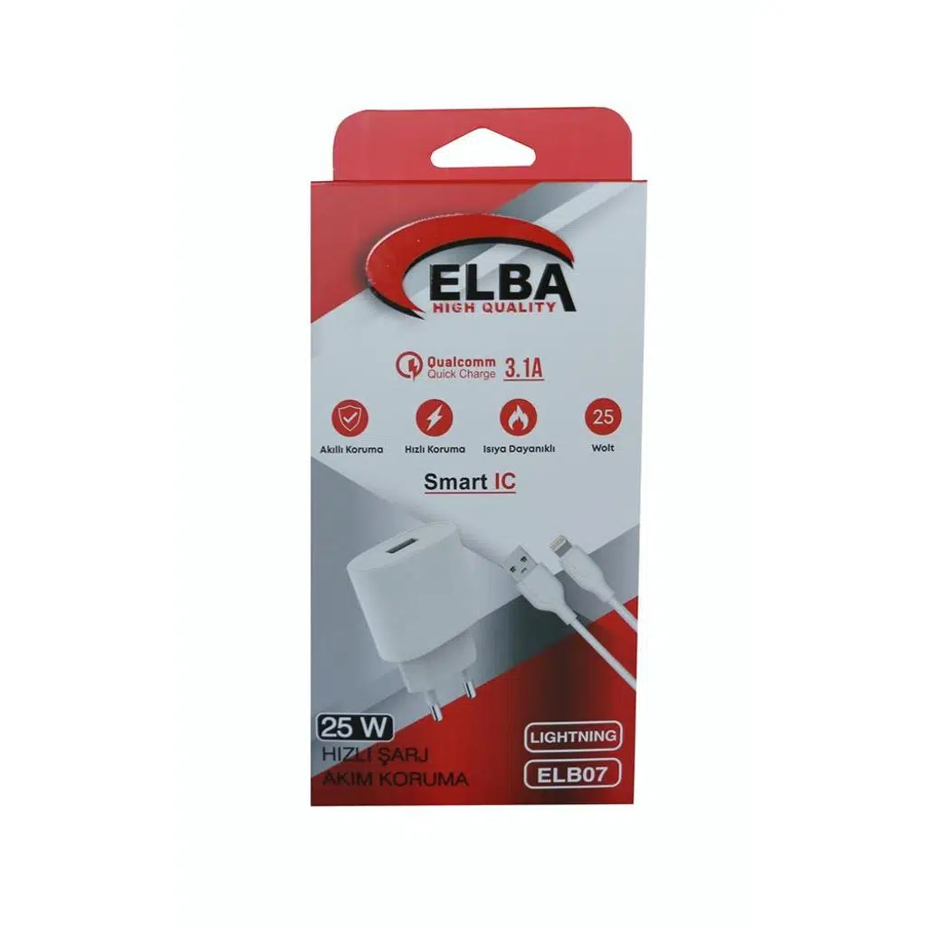 | Etiketler | Elba ELB07-USB-25WIOS Beyaz 25W Usb Ev Şarj Kafa+ Usb 1mt Lightning Kablo QC4.0 Hızlı Şarj |