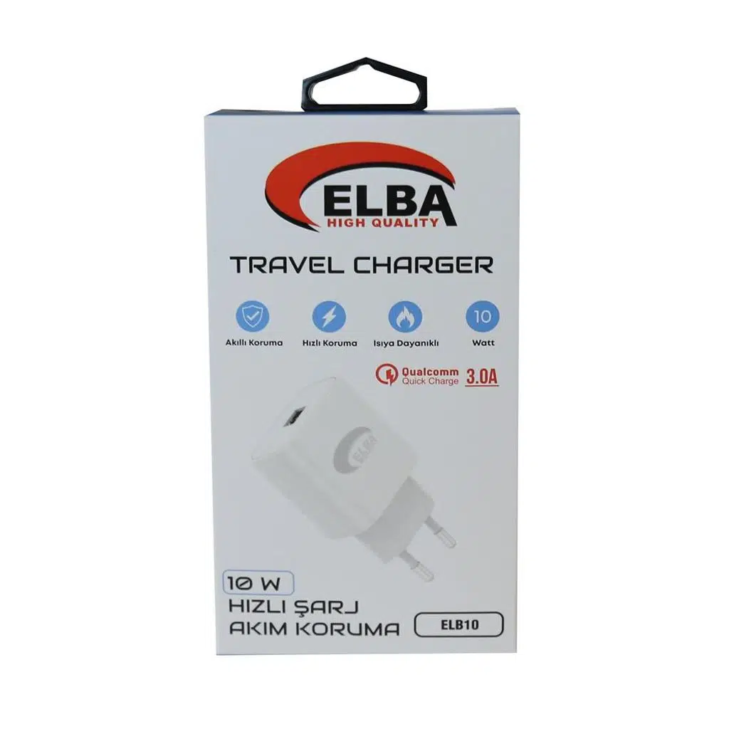 Elba ELB10, mobil cihazlar için hızlı ve güvenli şarj sunan USB çıkışlı adaptör modelidir. 3.0A çıkış gücüyle yüksek performanslı şarj imkanı sağlarken, akıllı koruma devresi sayesinde cihazlarınızı aşırı akım ve ısınmaya karşı korur. Ev tipi priz uyumlu yapısıyla günlük kullanımda ideal çözümdür.