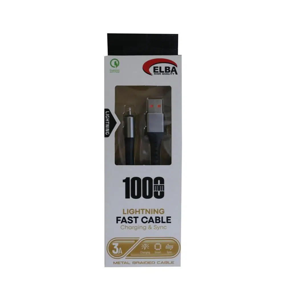 Elba ELB27-IOS, iPhone ve diğer Lightning girişli Apple cihazlar için tasarlanmış, 3A akım destekli hızlı şarj kablosudur. Hasırlı dış kaplaması sayesinde hem dayanıklılık hem esneklik sunar. 1 metrelik uzunluğu mobil kullanımda ideal konfor sağlarken, beyaz rengiyle sade ve uyumlu bir görünüm sunar.