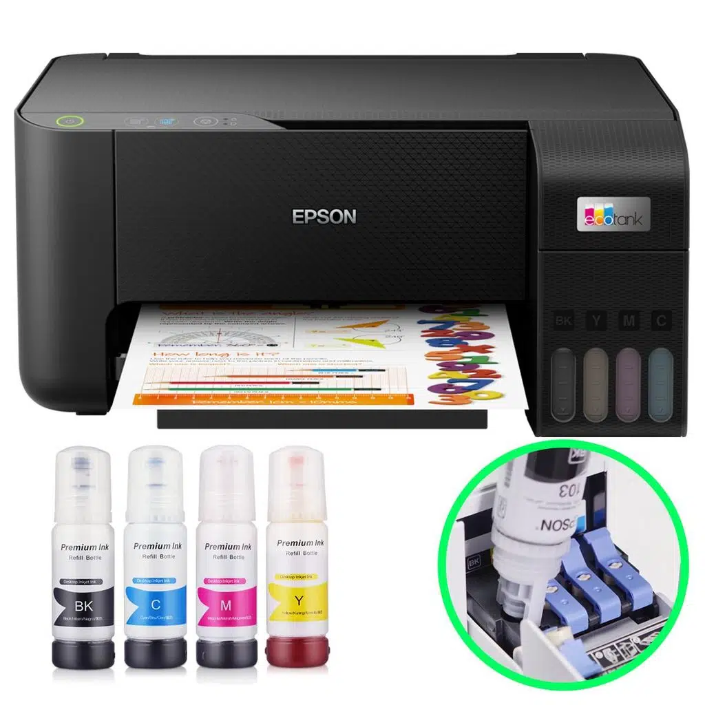 3'ü 1 arada EcoTank, şık ve kompakt tasarımı, mobil baskı özelliği ve verimli teknolojisi sayesinde her açıdan ön plana çıkıyor. Bu güvenilir kartuşsuz yazıcıda gelişmiş bir mürekkep dolum sistemi ve kullanımı kolay mürekkep şişeleri bulunur. Üç yıllık mürekkep sayesinde mürekkep maliyetinden %90'a2 kadar tasarruf edebilirsiniz.
