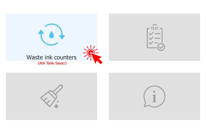 ⦾ 1- Atık tankı sayacına tıklayın (yazıcınız kablo ile bağlı ve açık olmalıdır.)