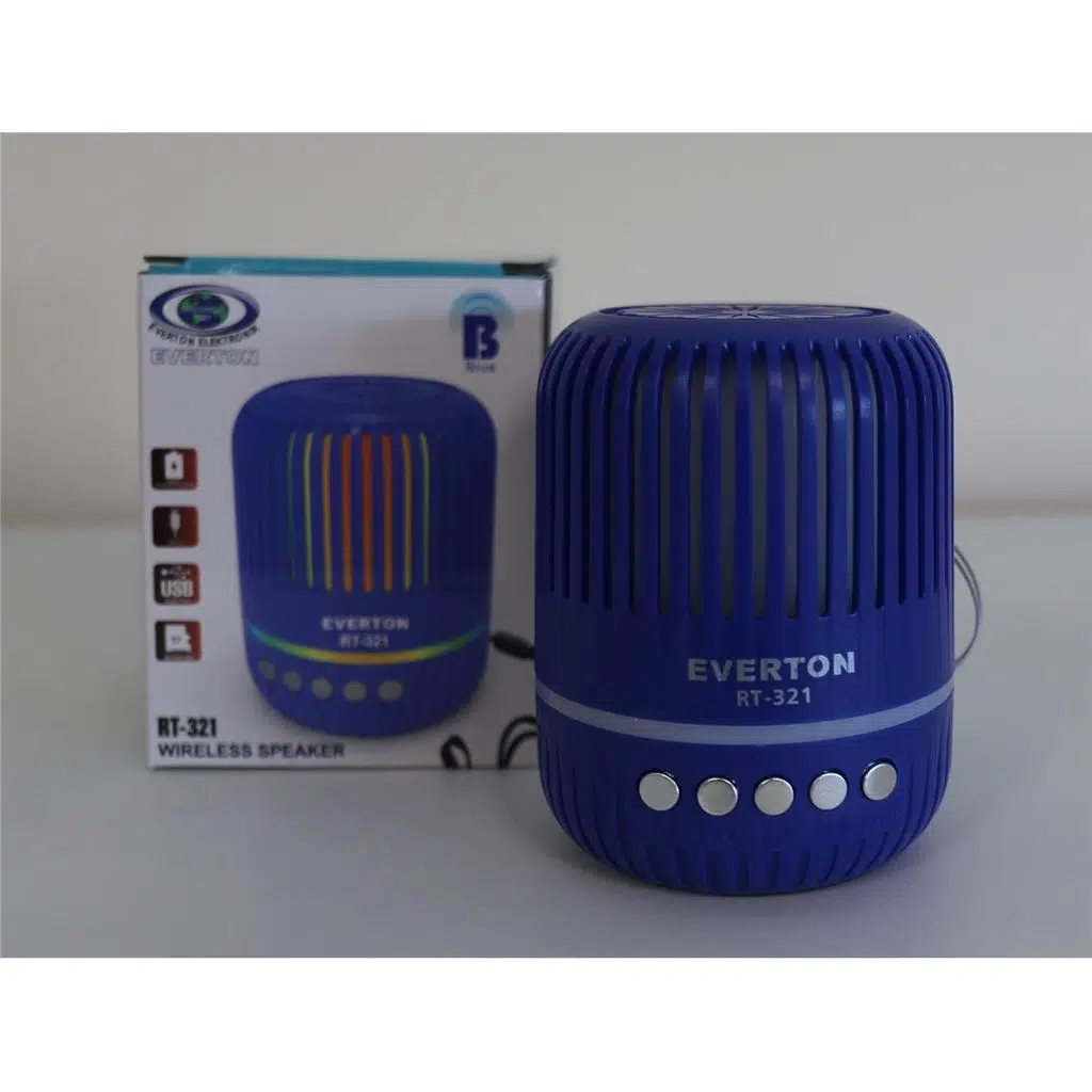 Everton RT-321, kompakt yapısı ve çok yönlü bağlantı seçenekleri ile günlük kullanım için tasarlanmış taşınabilir bir Bluetooth hoparlördür. Küçük boyutuna rağmen tatmin edici ses performansı sunarak hem iç mekân hem de dış mekân kullanımında pratik bir müzik çözümü sağlar. Kablosuz bağlantı desteği sayesinde telefon, tablet ve diğer cihazlarla kolayca eşleşebilir.