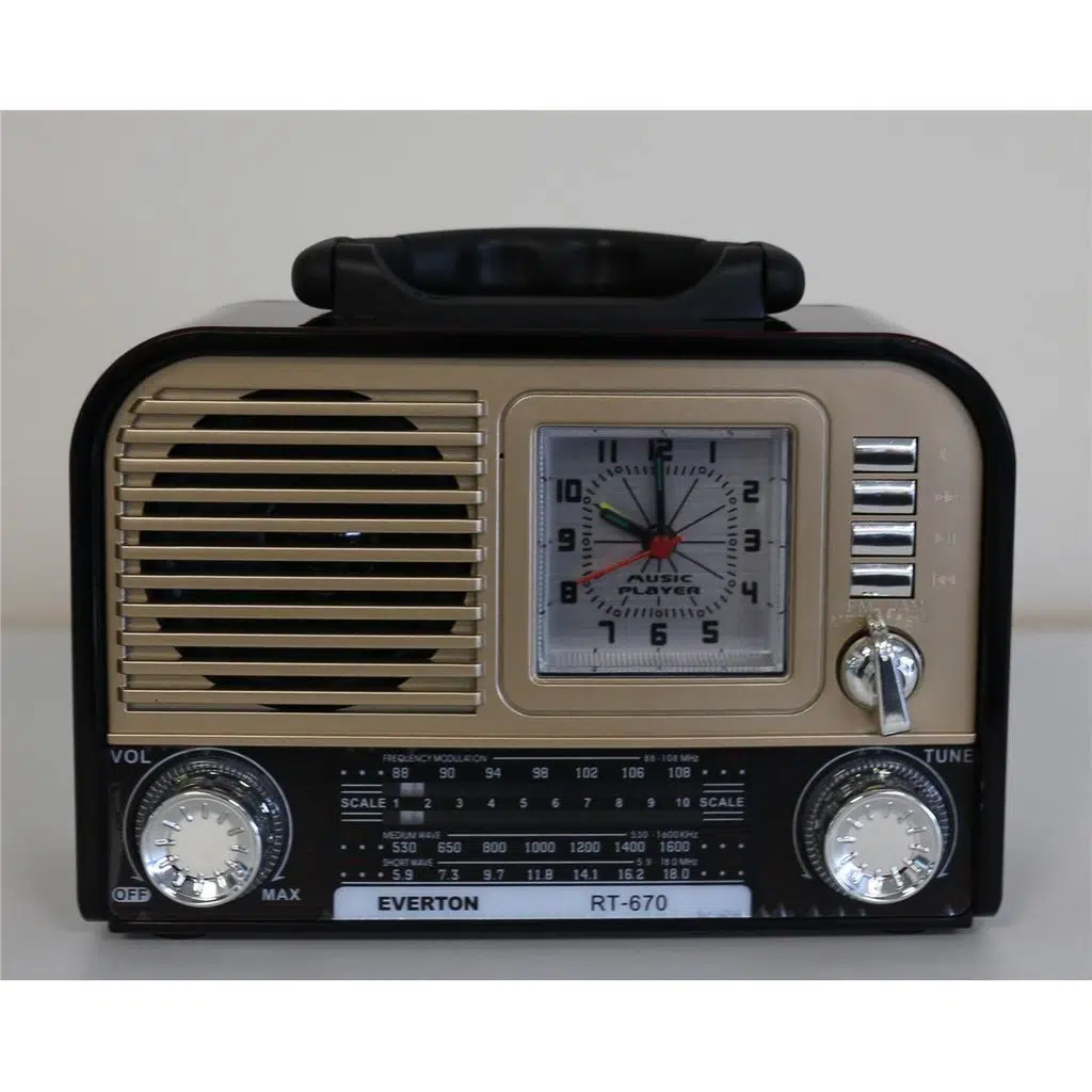 Everton RT-670, klasik radyo tasarımını modern teknolojilerle birleştiren çok fonksiyonlu bir ses sistemidir. Nostaljik görünümü sayesinde bulunduğu ortama estetik bir dokunuş katarken, Bluetooth, USB ve Micro SD gibi güncel bağlantı seçenekleriyle pratik bir kullanım sunar.