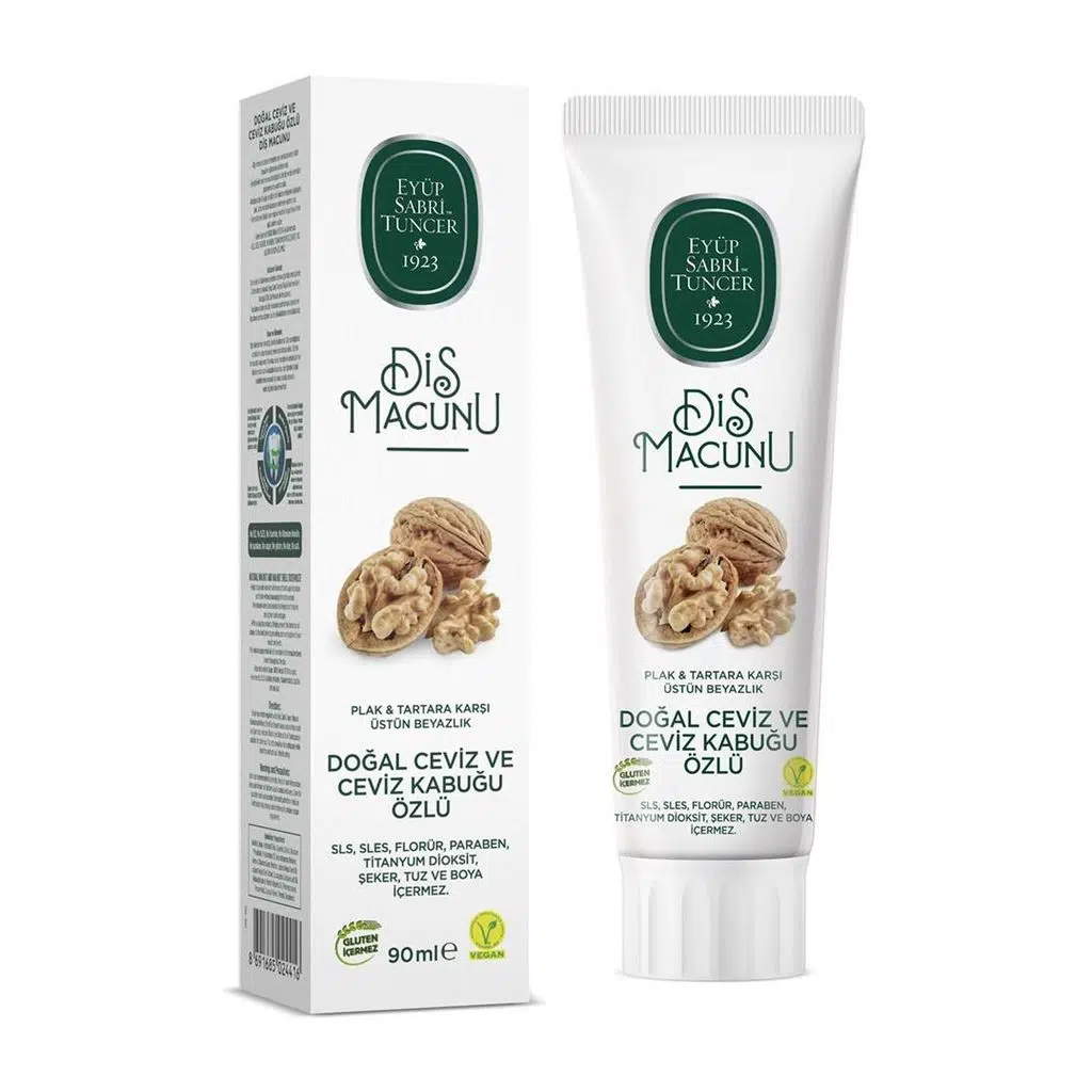 Eyüp Sabri Tuncer Doğal Ceviz ve Ceviz Kabuğu Özlü Diş Macunu, ceviz özünün doğal koruyucu gücünü ağız bakımına taşıyarak sağlıklı ve güvenli bir kullanım sunar.