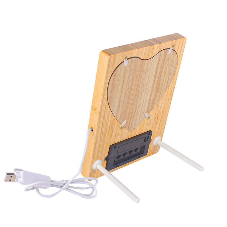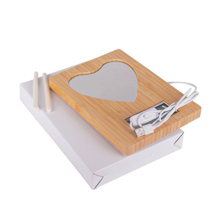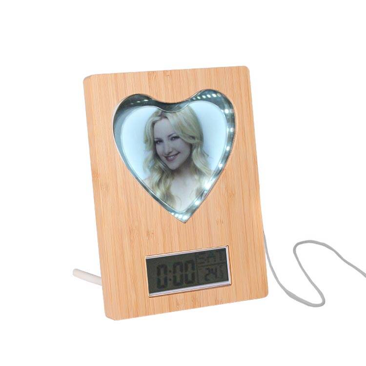 Fotoğraflı Led Işıklı Kapli Sihirli Ayna Bambu Saat Takvim Çerçeve