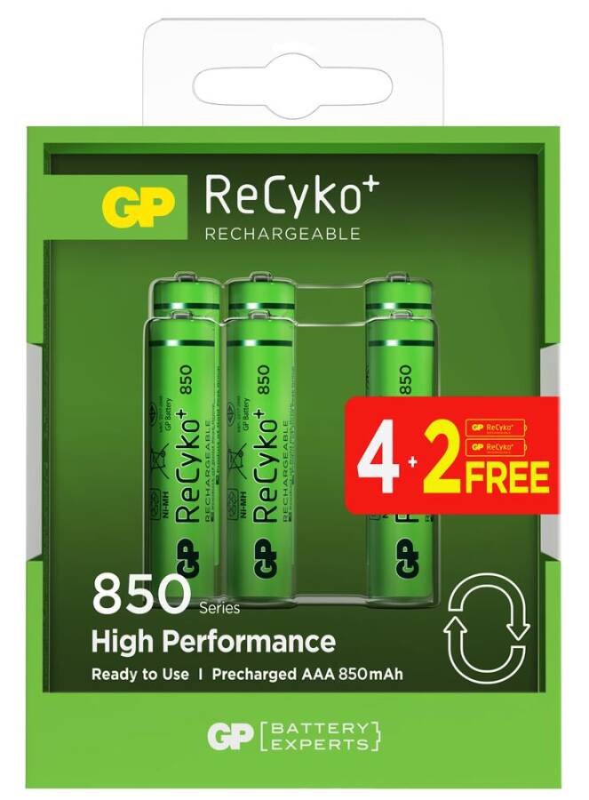 GP AAA 850 mAh Şarjlı İnce Kalem Pil 4+2'li Paket Recyko GPHCH83BOK