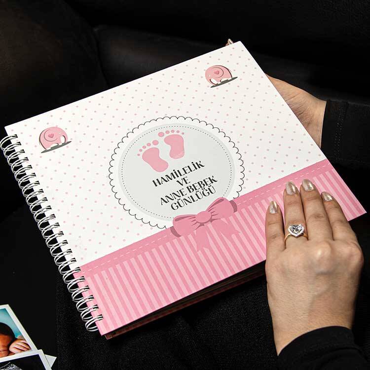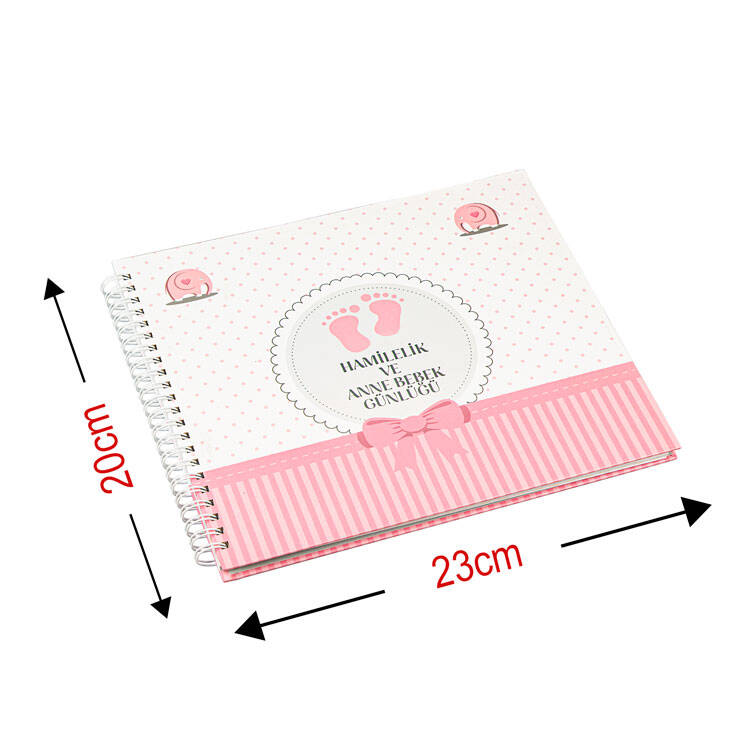 Hamileliğin ilk aylarından ve bebeğin 1 yaşına kadar unutulmaz anlarını ve birbirinden kıymetli fotoğrafları sergileyebileceğiniz kişiye özel kız bebeğin günlüğü pembe anı defteri.