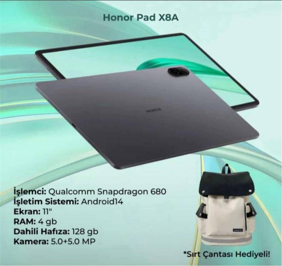 Honor Pad X8a, şık tasarımı ve güçlü donanımıyla günlük kullanım, eğitim ve multimedya ihtiyaçları için ideal bir Android tablettir. 11 inç geniş ekranı, 4GB RAM ve 128GB depolama kapasitesiyle akıcı performans sunarken 2.4GHz işlemcisi sayesinde hızlı ve verimli kullanım sağlar.