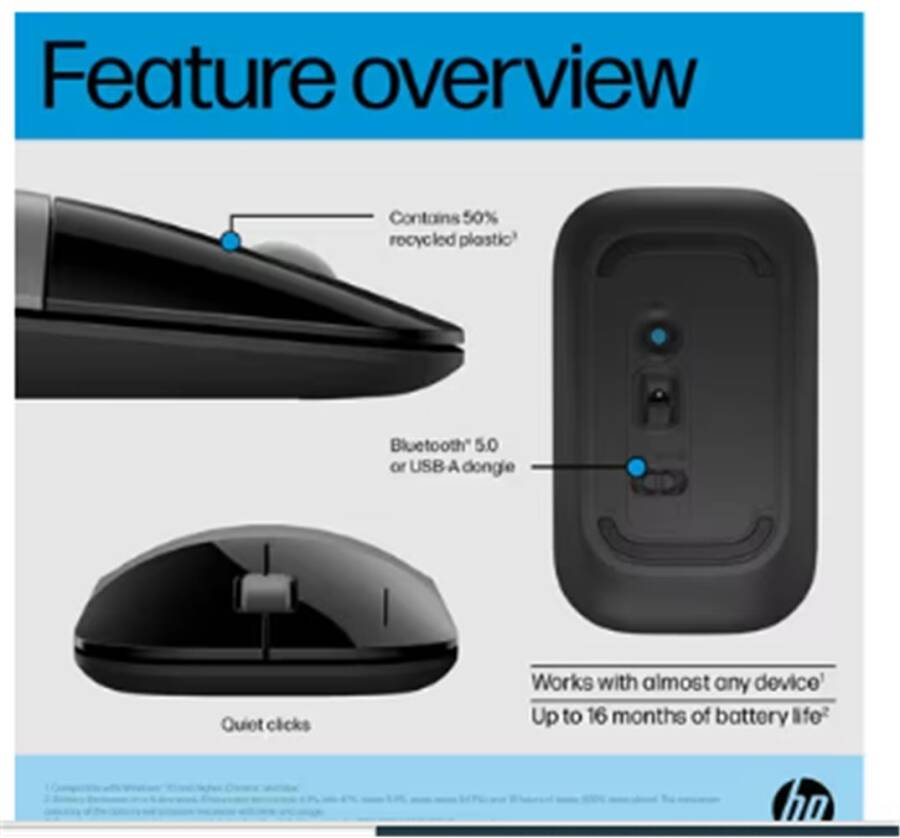 HP Z3700 758A9AA, zarif ve ince tasarımıyla günlük kullanım için ideal bir kablosuz optik mouse modelidir. Bluetooth ve 2.4GHz çift bağlantı desteği, 1600 DPI hassasiyetli optik sensörü ve modern gümüş rengiyle hem estetik hem de işlevsel bir deneyim sunar.