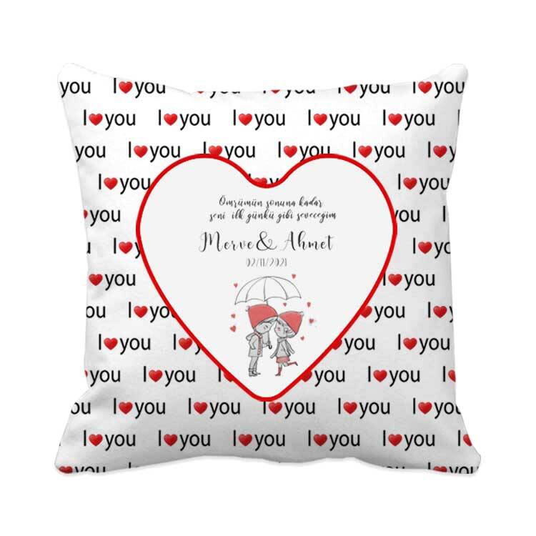 Kılıfın arka yüzeyinde (I Love You) yazıları, ön yüzeyinde ise (I Love You) yazıları ve baskı uygulayabileceğiniz (Kırmızı Kalp) desenli baskı alanı bulunmaktadır.