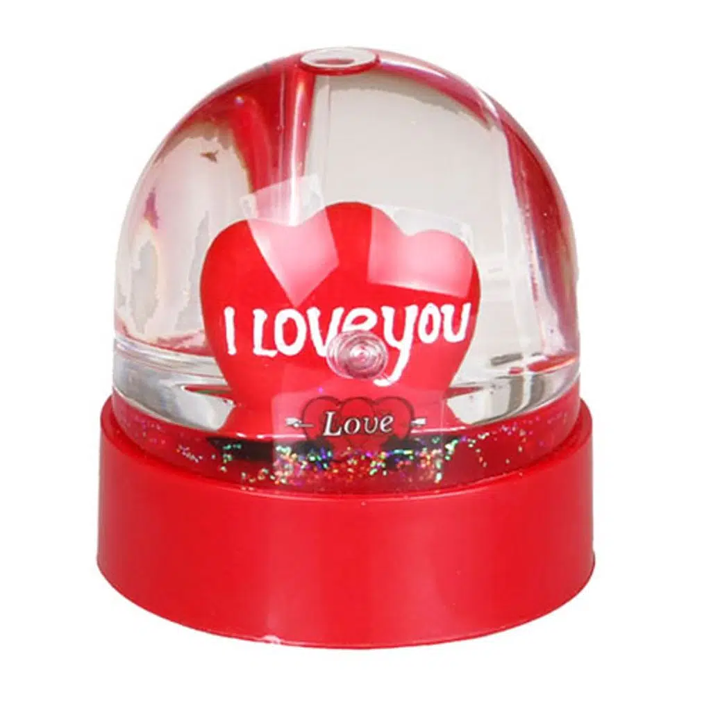 Love temalı, kalemlik yeri olan ışıklı ve müzikli bir kar küresi modelidir.