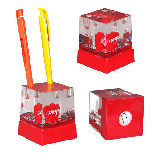 Love temalı, kalemlik yeri olan ışıklı ve müzikli bir kar küresi modelidir.