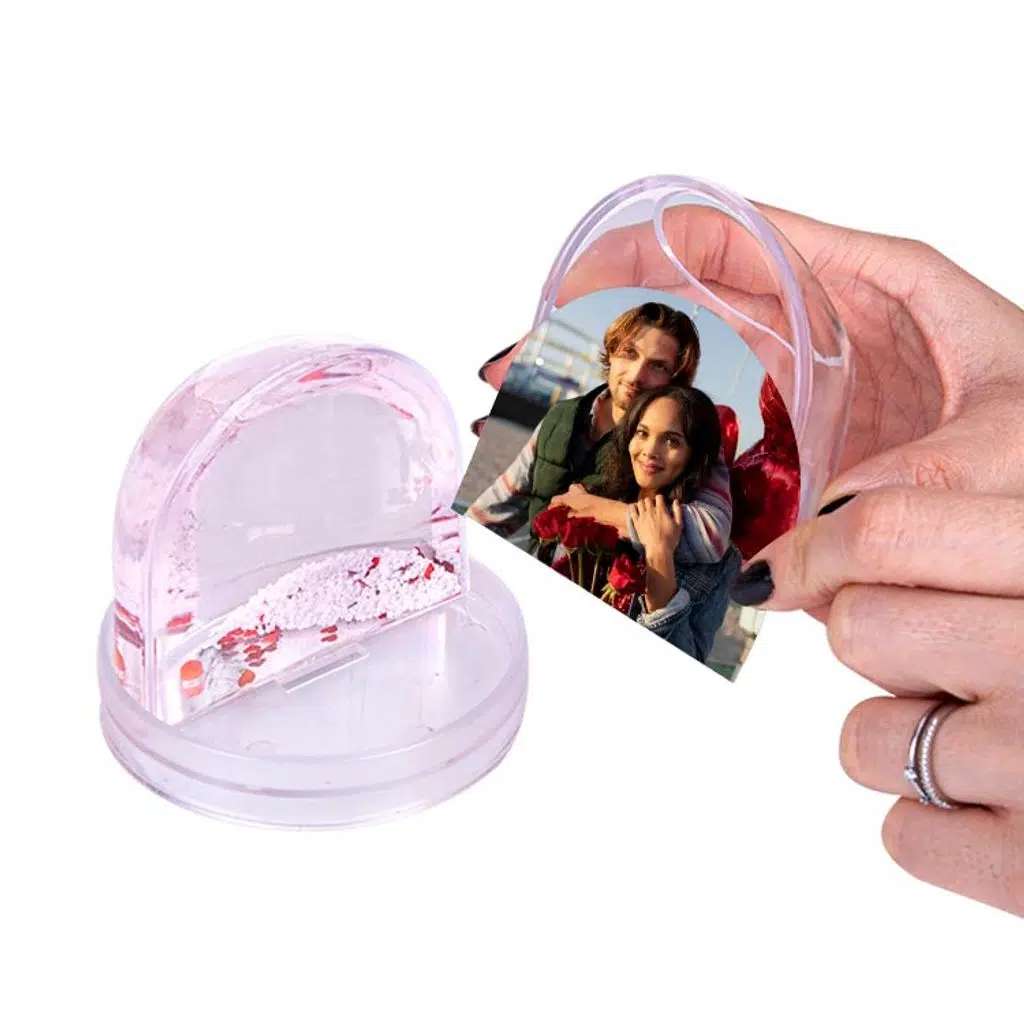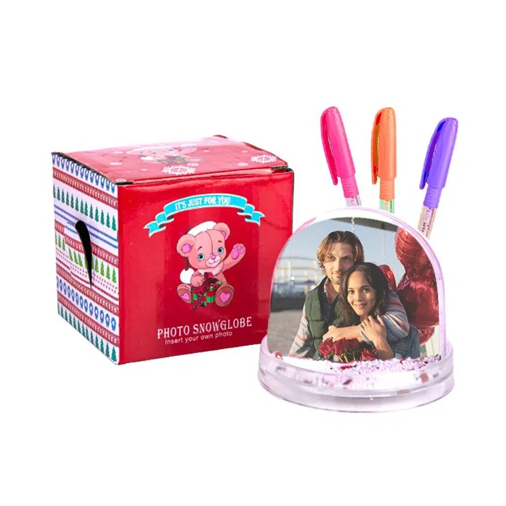 9cm çapında olan bu kar küresi/kar küpü, içerisine 7x7cm ebatlarında bir fotoğraf yerleştirmenize imkan tanırken, aynı zamanda arka kısmı kalemlik olarak kullanılabilir.