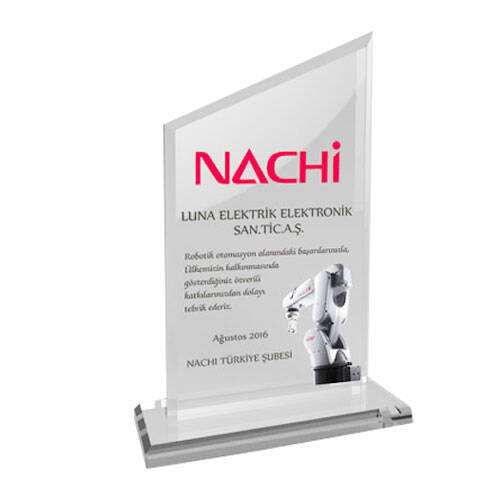 Kristal malzemeden üretilmiştir.Kristal plaket ve üzerine monte edilerek dik durmasını sağlayan ayak olmak üzere 2 parçadan oluşmaktadır.