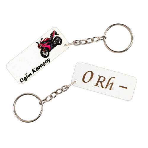 Sublimasyon ve lazer transfer baskıya uygun MDF den üretilmiş anahtarlıktır.