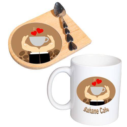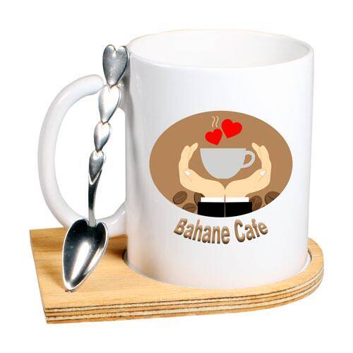 Sublimasyon Kaşıklı Kupa Fincan Altlığı