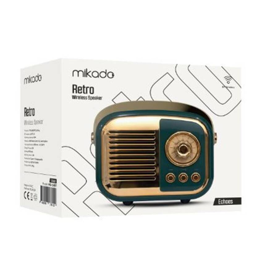 Mikado MD-24BT Echoes, nostaljik tasarımı modern teknolojilerle buluşturan klasik retro taşınabilir müzik kutusu modelidir. 3W ses çıkışı, 800mAh batarya kapasitesi ve çoklu bağlantı seçenekleriyle müzik keyfini her yerde yaşatır. Yeşil renkli retro tasarımı ile hem dekoratif hem de fonksiyonel bir kullanım sunar.
