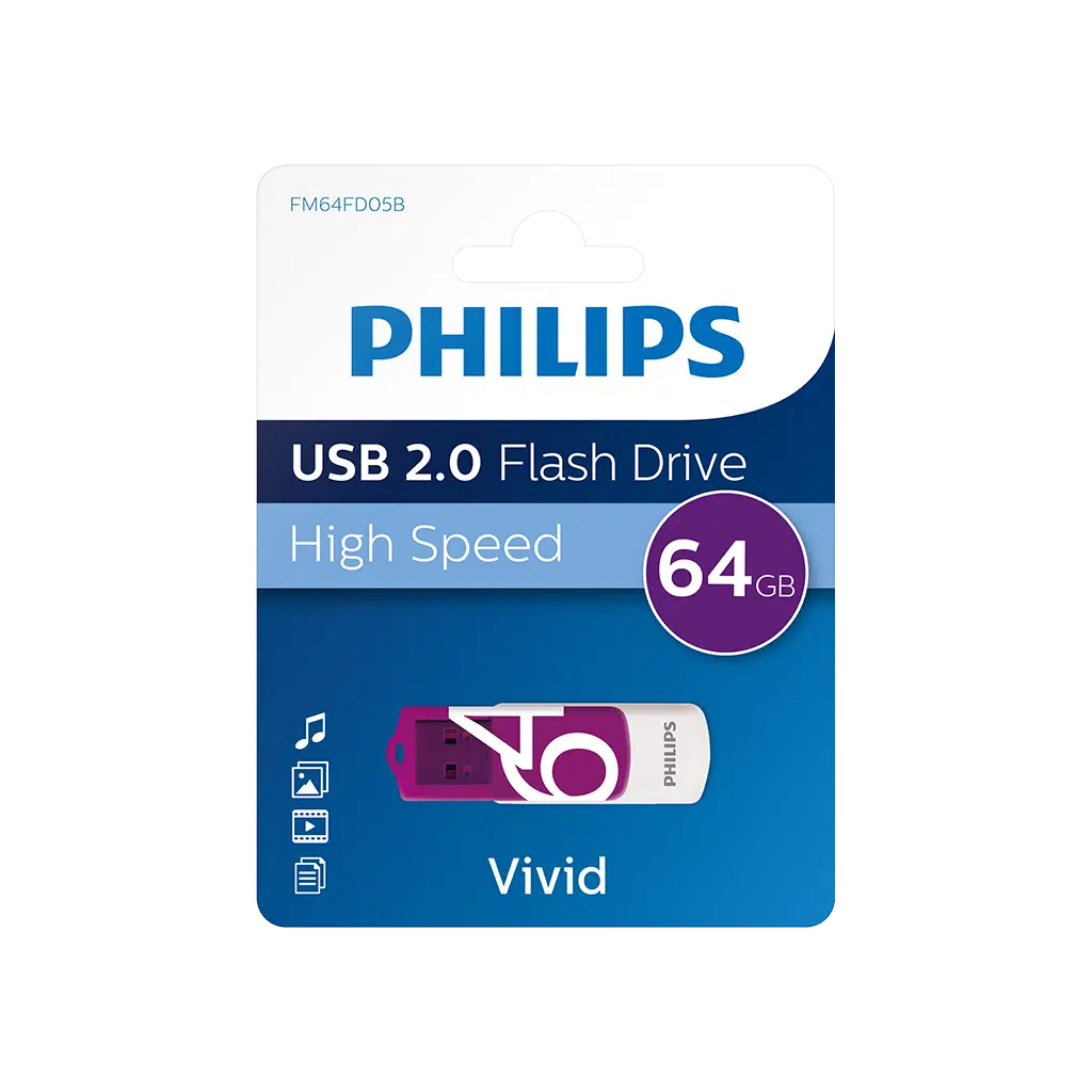 Kolay, kullanıcı dostu tak ve kullan özellikli cihaz. Renkli Philips USB flash sürücü vivid modeli, günlük dosya, fotoğraf ve müzik depolama ve paylaşımınızı kolay ve keyifli hale getirir.