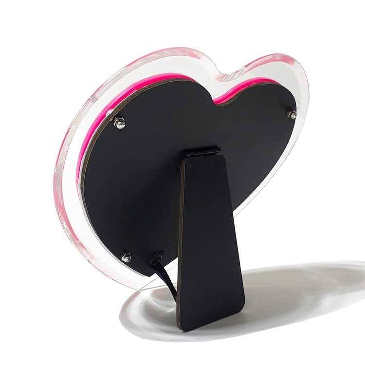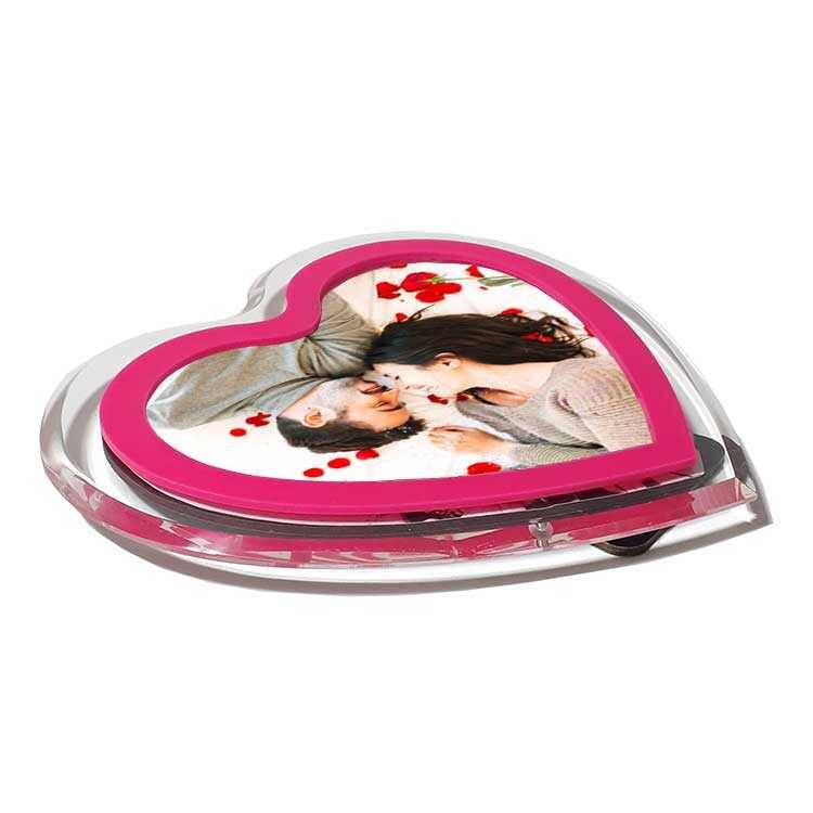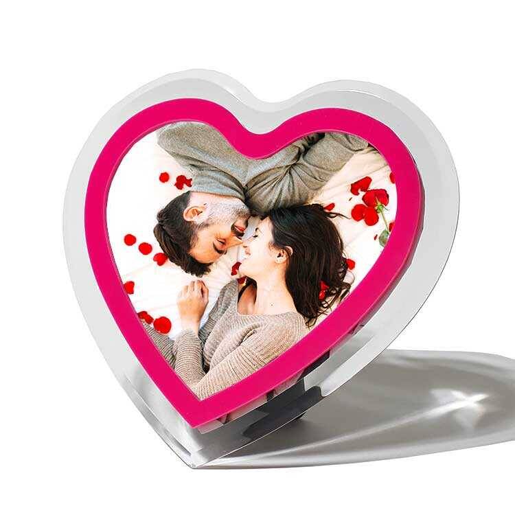 Pleksi malzemeden üretilmiş, oldukça kaliteli ve şık pembe kalpli fotoğraf çerçevesi.