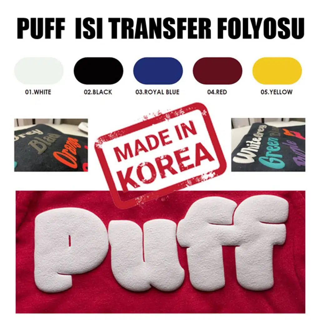 PUFF FLEX kumaşa baskıda kullanılan POLİÜRETAN bazlı ısı transfer folyosudur.