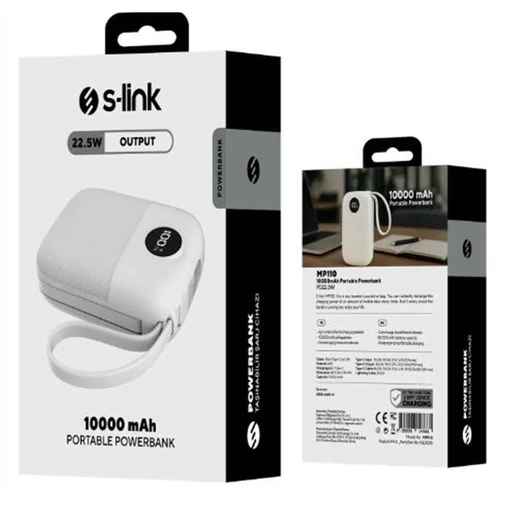 | Etiketler | S-link MP110 10000mAh PD22.5W Type-C+Lightning Kablolu Beyaz Pil Şarj Cihazı Powerbank |