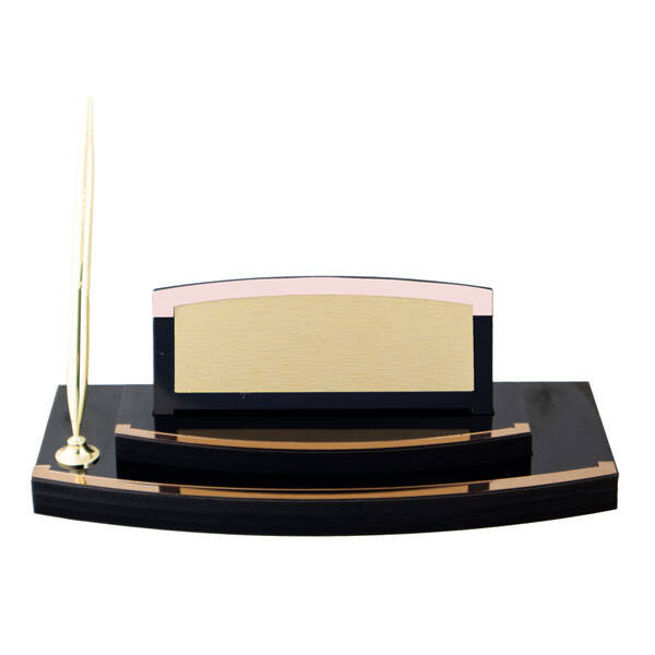 Ürün içeriği: 1 adet ahşap isimlik + 1 adet altın renkli sublimasyon baskı metali + 1 adet altın kalem