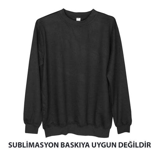 Siyah Pamuk Polyester Unisex Sweatshirt - Yetişkin